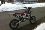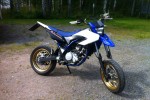 Kiitoksia, unohtui mainita, eli nyt syksyllä päätin vain vaihtaa käsisuojat ja ajoin sen 2300km. Keväällä Arrowin äänenvaimennin, Evotechin kilventeline, musta fättis + raiserit, fatbar pehmuste, Dicen kääntöpeilit ja jotkut käteen sopivat gripit.