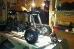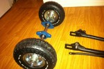 Vähän näyttää höpsöltä 4" renkailla. Heitä laipat toisinpäin jotta akseli on swingin yläpuolella ja jotkut 8" mönkijän pallot pyörimään akseleiden päihin..?