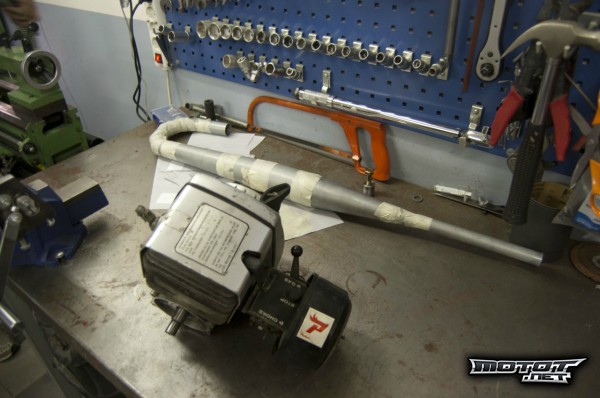 Ensimmäinen oma tekele, #000, putki vanhaan Valmetin SM160cc palopumppuun, huipputehot @ 6000 RPM, tehotavoite 14 heppaa ja tasainen vääntö, vakiona ilmeisesti jotain 10 hv luokkaa vakioputkella, joka on käytännössä linnunpöntön mallinen. Kuvassa näkyy myös itse moottori. Testikäynnistysvideo: http://www.youtube.com/watch?v=v_J-CkD9YNA&feature=youtu.be (kilinä videolla kuuluu sitten ruuvipenkistä), täristi pöytää aika hurjasti ja tahtoi ilmeisen kovasti lähteä karkuun. Sisuskaluiltaan motti kuin uusi eikä ole juuri tunteja nähnyt. Palopumppu maksoi 2€ aikanaan että ei ole hinnalla pilattu. Tästä rakennetaan varmaan jonkin sortin lumiskootteri...