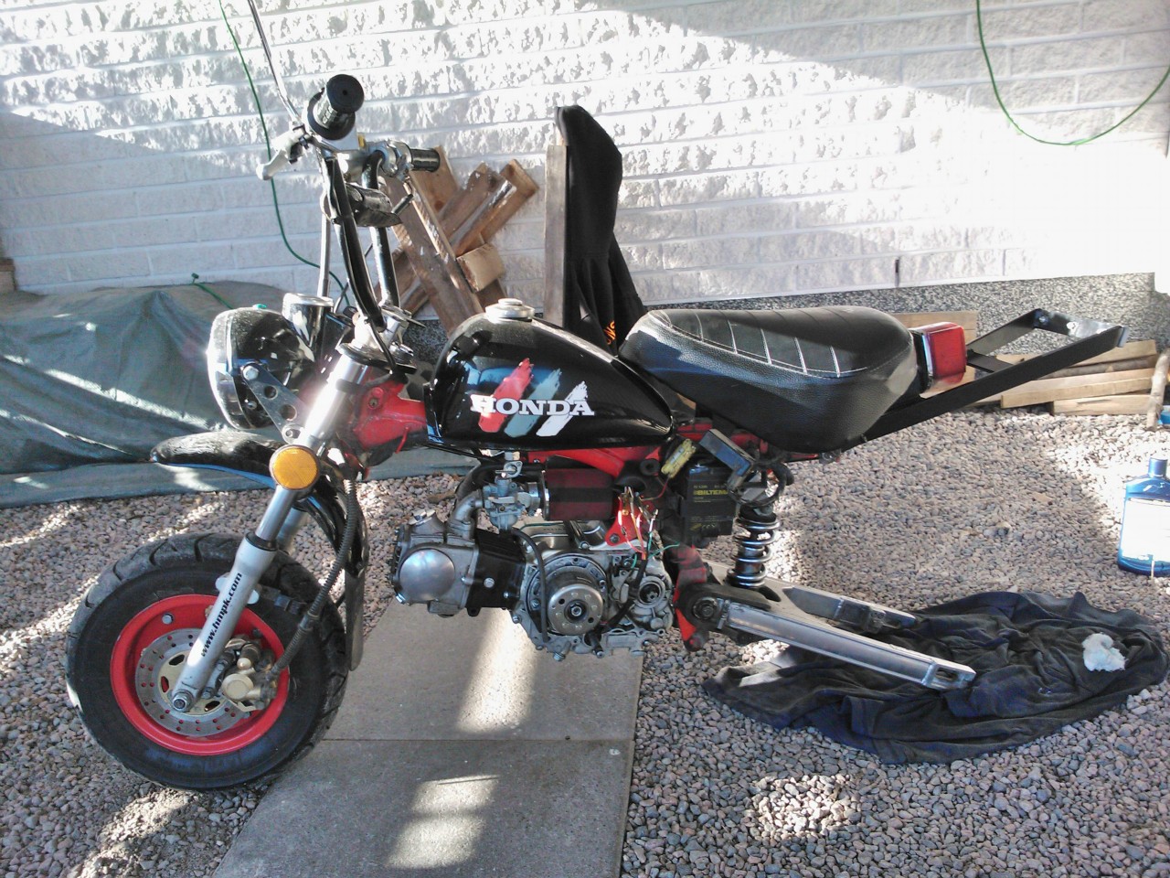 Tuli laitettua mankiin monojousella toimiva takahaarukka. Vakiotarakka pitäisi laittaa vielä paikalleen niin olisi tyylikkäämpi (oma mielipide). Vakiotarakka pitäisi vain maalata uudestaan.