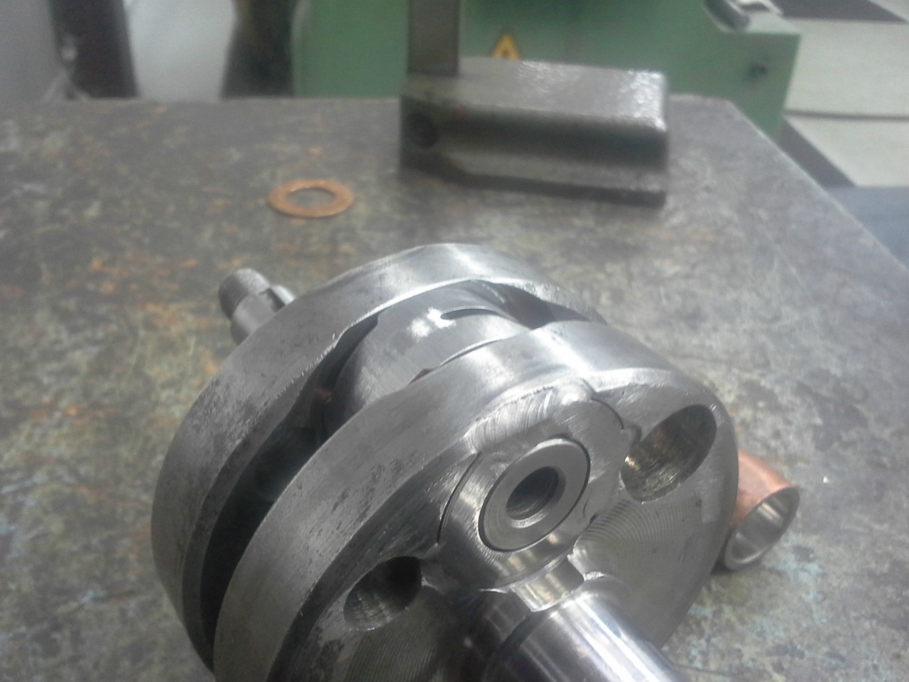 50mm iskuinen kampiakseli Pv limpuille alkaa olemaan jo aika maksimi. Kiertokangen alapäätä piti hioa jotta mahtui lohkoihin. :)