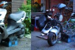 Kaikki turha revitään pois mitä ei liikkumiseen/pysähtymiseen tarvitse, koko laite värjätään halvimmalla mattamustalla mitä kaupasta saa. Rottaskoba siis tulee. Joskus.