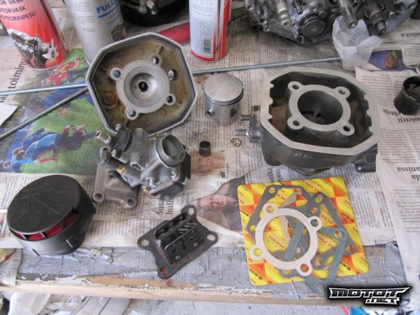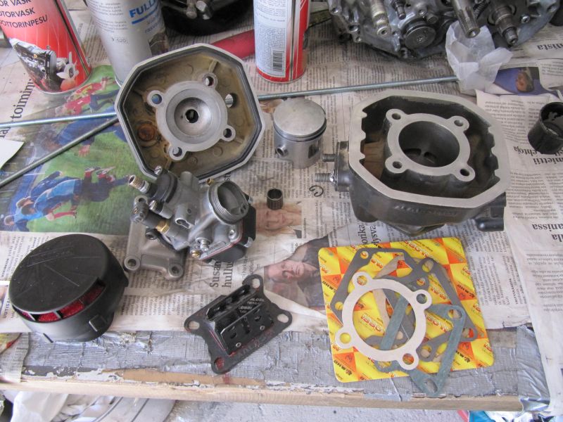 Käyttäjältä Martikaine leiponeena ostettu Malossin pytty+kansi+läppävena (rebuilded by Waltter-Racing), ilmanputsari ja tiivisteet Moposportilta, mäntä Duellilta (PV:n mäntä, modannut myös Waltter-Racing), imukaula paikallisesta varaosaliikkeestä ja kaasari maailmalta.