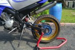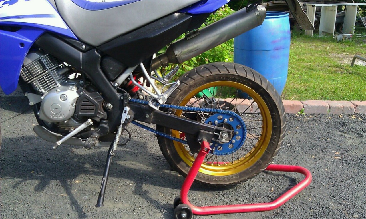 ravistin purkin kunnolla ja pyöritin rengasta tossa pukilla ja suihkutin sitä ketjun sisä- ja ulkopinnalle ja sen jälkeen kosmeettisistä syistä myös tuohon sivulle. mitään erikloista en tuota laittaes...