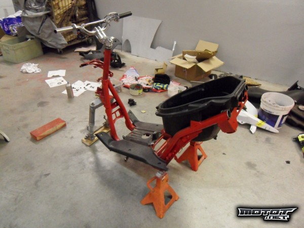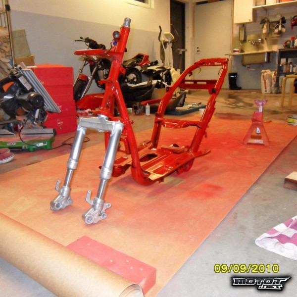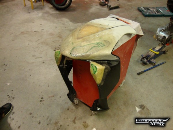 Runko maalattuna, ja keulan kiillotuksen aloittelu