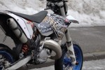 Tosiaan, kilpi irtosi ja laitettiin yhdellä nippusiteellä takaisin paikalleen. Kilpi jäi juuri otolliseen paikkaan takarenkaan raiskattavaksi. Pompuissa ja montuissa rengas painanut kilven tuollaiseksi.