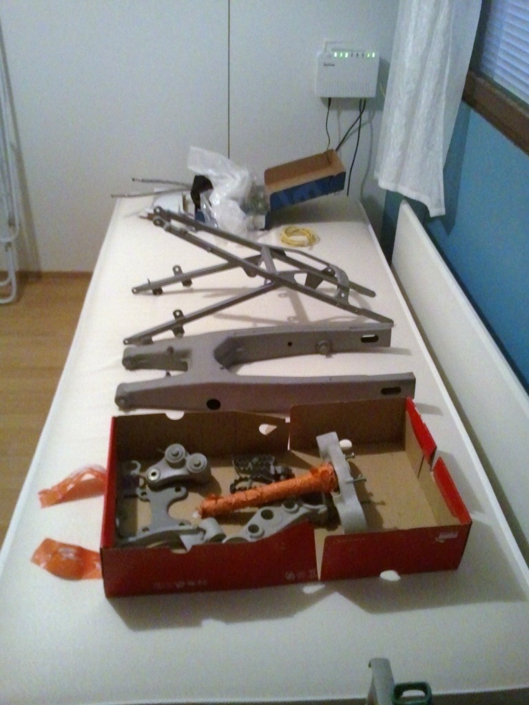 Osat puhallettuna, maalaukseen menossa.