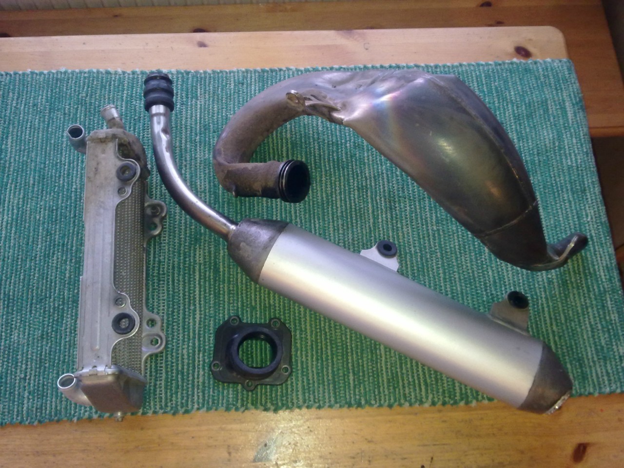 Tässä vähän kuvatekstii yleisesti eli: Syylärin kennot vuotavat, imukaula haljennut, äänenvaimentimen välipillissä n. puolen sentin lommo sekä pilli vääntynyt sivulle ja putken uusimis syyn huomannee ...