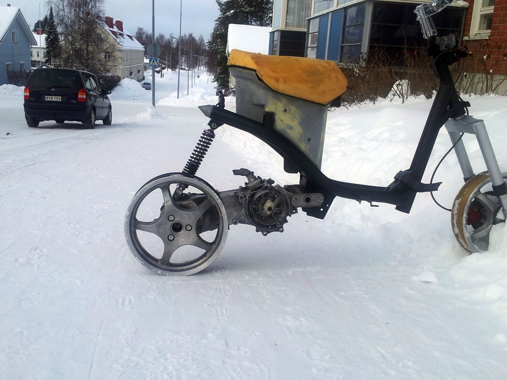 Tekniikkaan ei mtn ihmeellistä vielä ainakaan, 50cc pytty vähän siistittynä, luultavasti 17,5mm kaasari.
