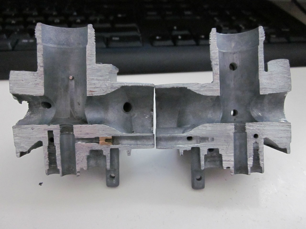 Halkaisukuva pilalle hitsatusta Mikunin VM12 kaasarista.