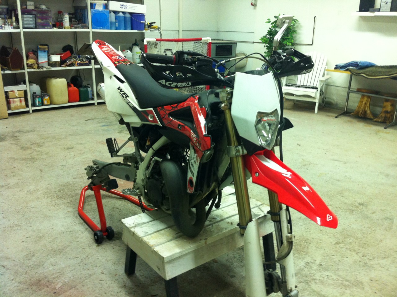 Renkaat irti odottamaan uusia kummeja ja käsisuojat, sekä lokari paikalleen.