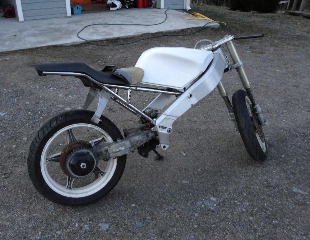 Takahäkki hieman edistynyt sekä penkistä turhaa tavaraa poistunut myös. Tankkia pitäis vielä saada hiukan alemmas. Ja ja ja vielä pitäis koko pyöräkin maalailla ja muuta.