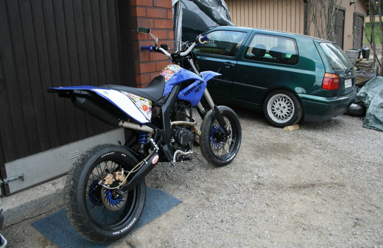 Tuli vähän näpsittyä lissää kuvia, numerokilpi ja spotti pääs takas paikallee ku tuli uus spotti hommattua ja keulasta lähti loppupeleissä hiilarit helvettii ku ne rupes alemman t-palan kohdalta vähän repsottaa, ei se ny paha oo noinkaa? :D Thaustalla velipojjaan pien jolffirojekti joka on vähän omaakin aikaa vieny