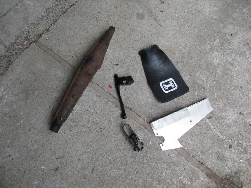 Roiskeläppä, uustuotanto ketjusuoja, kytkinkahva, jalkatappi ja vakioputken aihio.