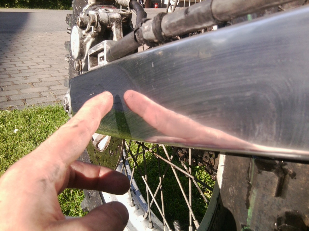 takahaarukan hinkkasin hiekkapaperilla 240-->2000 ja metalpolishit päälle. katteet oli muistaakseni 250 crf, vuosimallista ei tietoa ku en ite noita ostanu