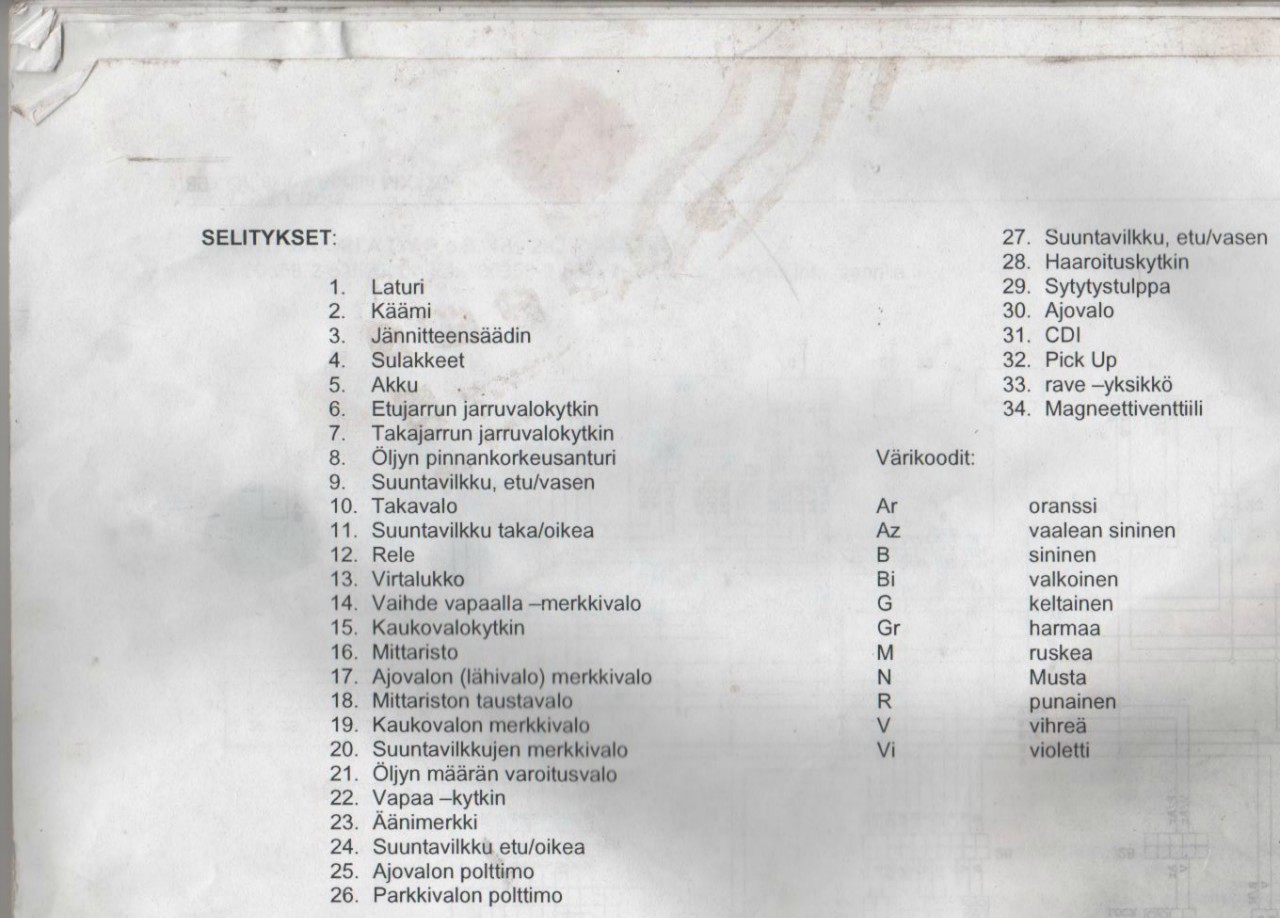 Aprilia MX 125 Sähkökaavio Kytkentäkaavio Sähköt Selitykset