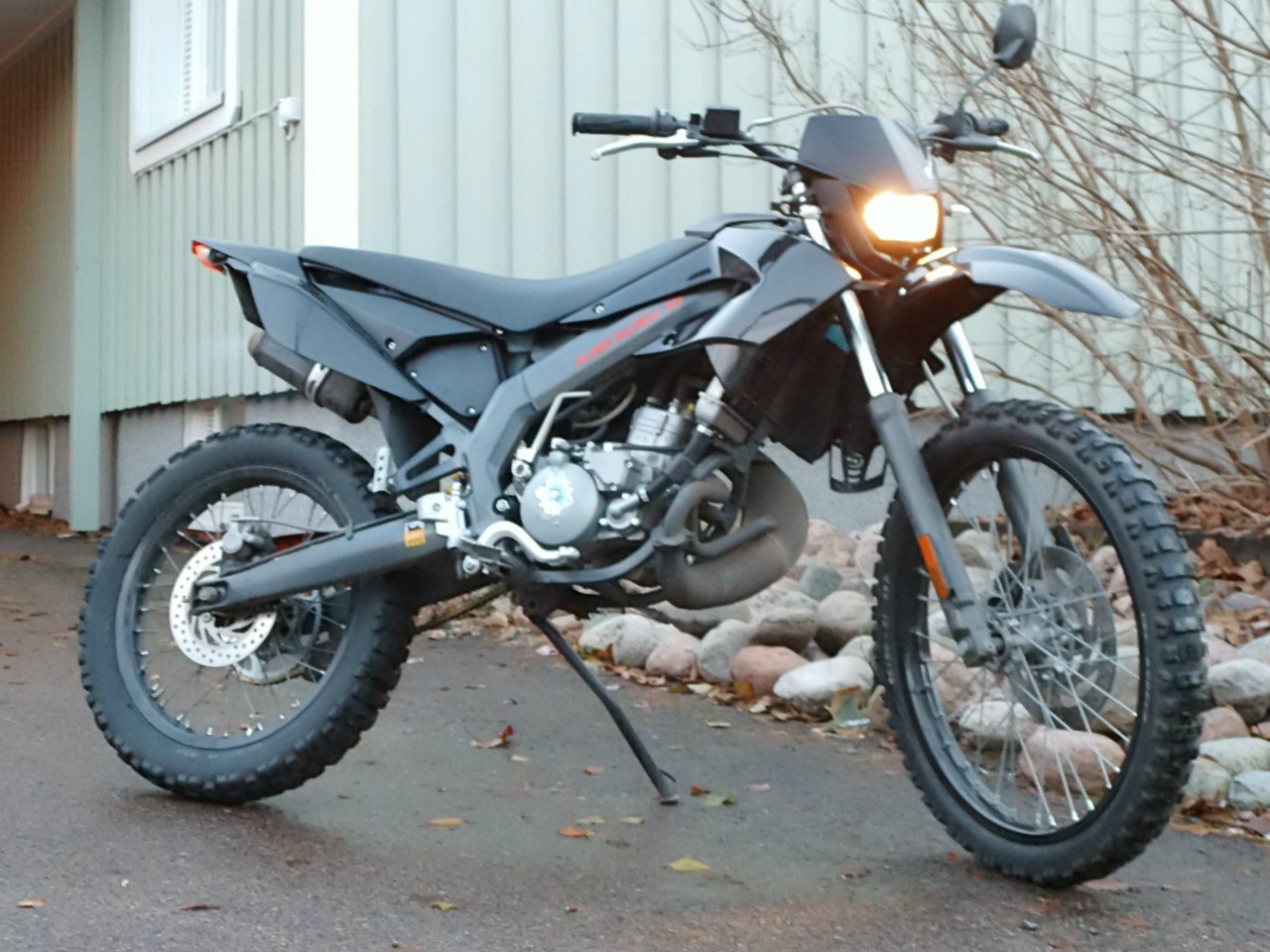 Eli pyörä sai ulkonäkö palikkaa tossa syysloman aikana. Pyörään vaihdettiin:maski(polisport Halo), loksu(polisport Freeflow), katteet ja vilkut (http://www.janikaasalainen.fi/vilkkupari-mini-arrow-carboniridium-p-7687.html). tanko ja peili ovat jo ostoslistalla