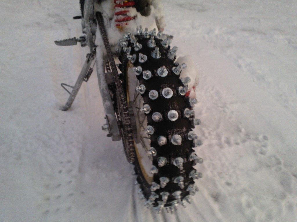 Tarkoitus olisi rakentaa tela. Pitäisi alkaa etsimään valmiiksi jonku lastenkelkan telastoa ym. sitten kesällä telaston suunnittelu. Tämä talvi mennään tällä pulttirenkaalla. Tosin tuollaki se menee t...