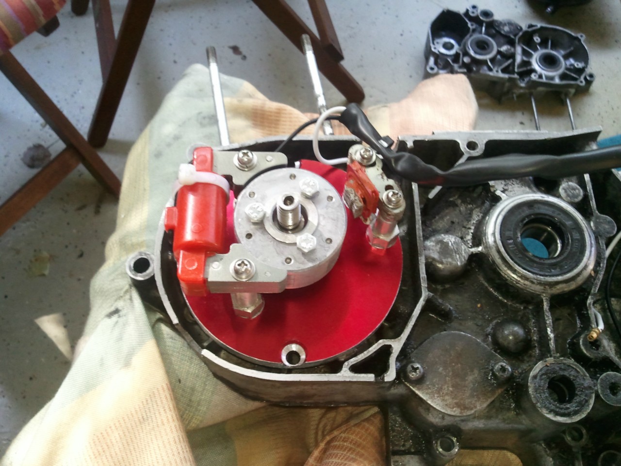 Empä ole viellä kerenny. Tohon aluslevyyn on nyt porattu uudet reiät ennakon säätöä varten eli viellä pitäis tonne vauhtiksen alle tehä jonkun näköinen väli palikka.