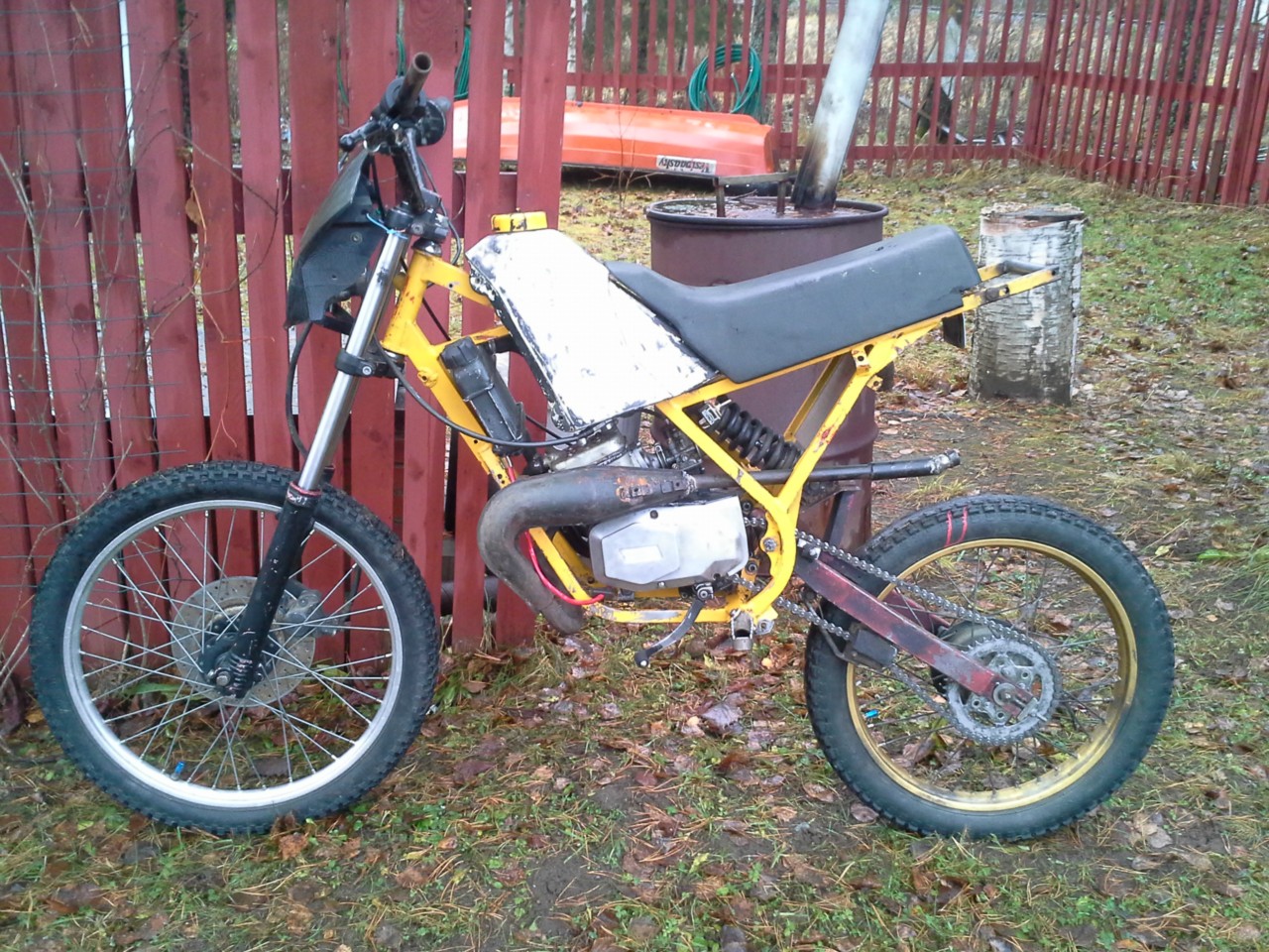 Putki laitetaan menemään rungon sisäkautta ja änkkä tulee siihen kohtaan missä jammuissa ja derbeissäkin on. Maalia niskaan ja etulokaria ja ktm takakatetta.