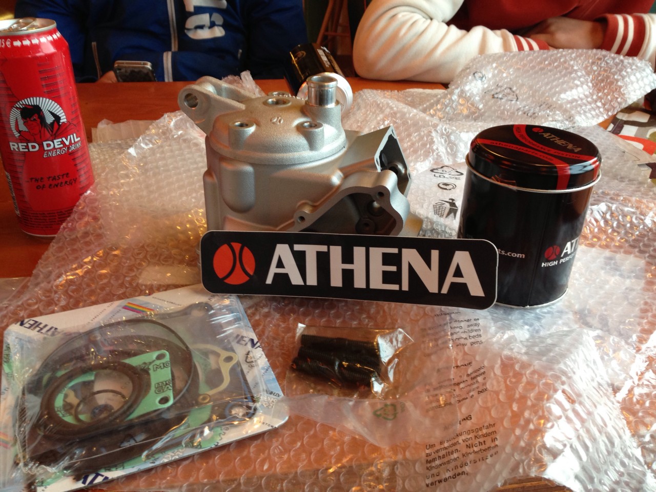Ei mee ihan suoraan, lohkoja pitää avartaa ja jäähdytys letkut mitää muokata ja erilainen neulalaakeri ja kannessa oleva tärinän vaimennin mikä menee runkoon pitää myös tehä ite.