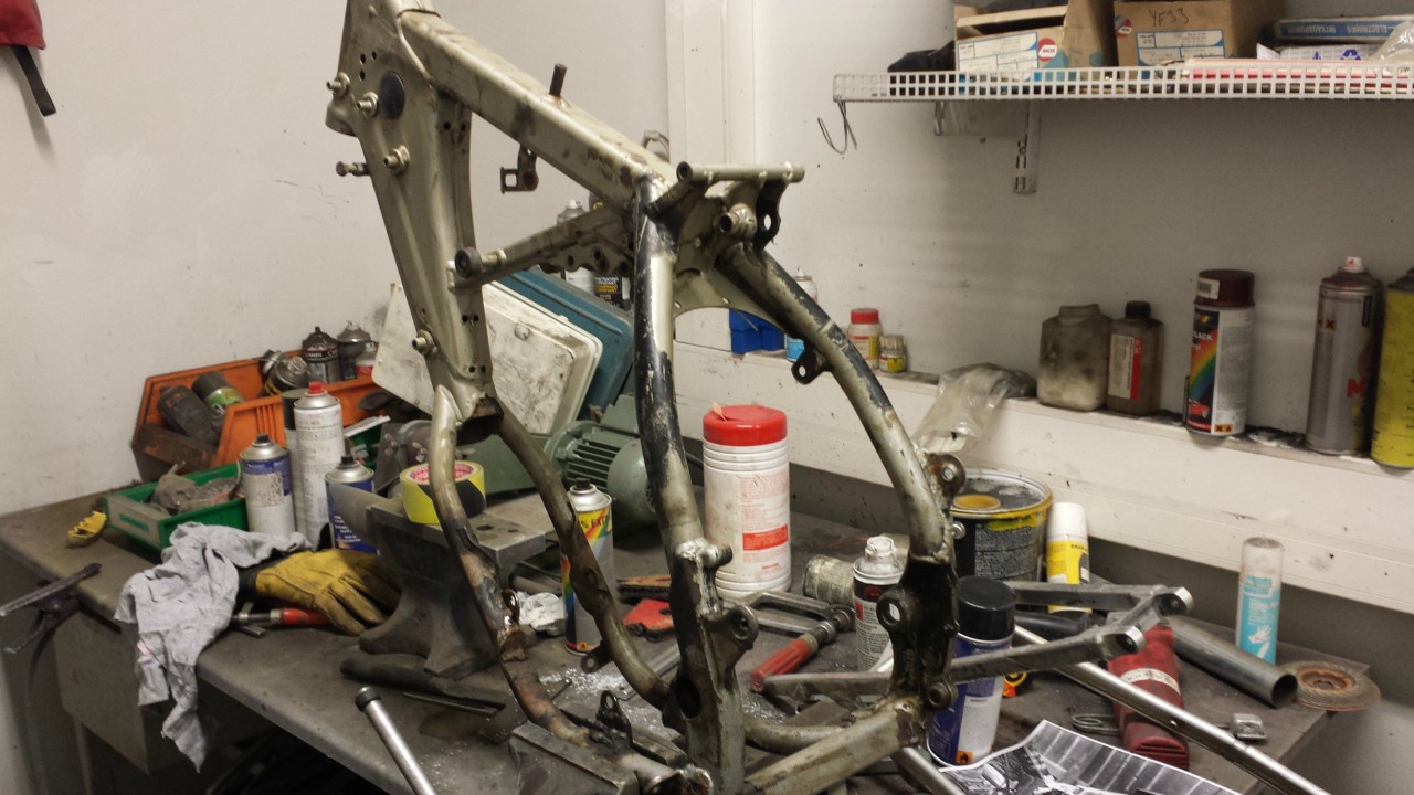 Eli täs aika lähtökohta koska runko ostettiin ilman moottoria ja uudelle moottorille on jo kiinnikkeet hitsattu koska uusi moottori saatiin kaverin vanhasta monttu pyörästä halvalla ^^