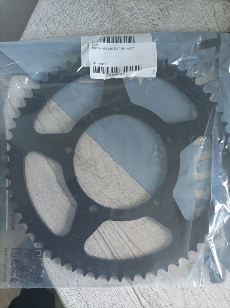 L??ytyi viel?? edullisesti ter??ksinen hammasratas taakse Saksasta eik?? mit????n alumiini paskaa..