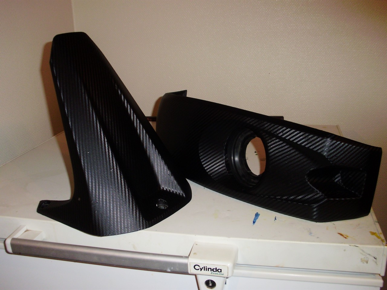 Sen takia ei näy kun niitä ei ole :D Tosi hyvin muotoutuu lämmöllä. Muutamiin paikkoihin piti vaan laittaa paloja. Ja vaikka saumakohta tuleekin niin sitä ei näe jos vaan laittaa reunat ja kuviot kohd...