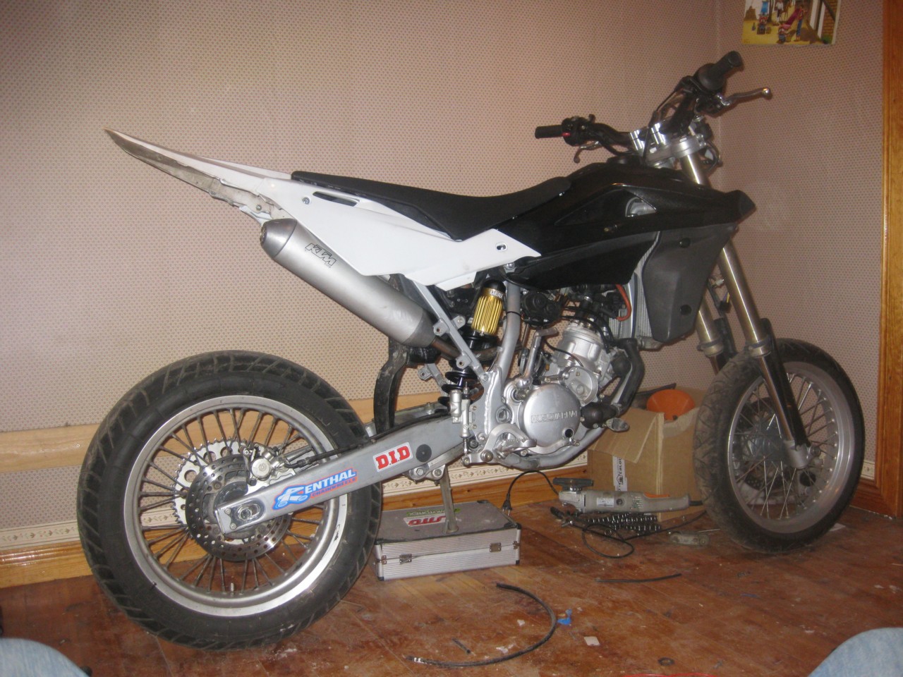 Kiitti kiitti siis ton änkän ny hetken mielijohtees toho hommasin ja ku käytettyn sai. :D onha toi ktm teksti kyll vielä toss mut aattelin siihe jonku FMF tarrant tyylii heittää :D