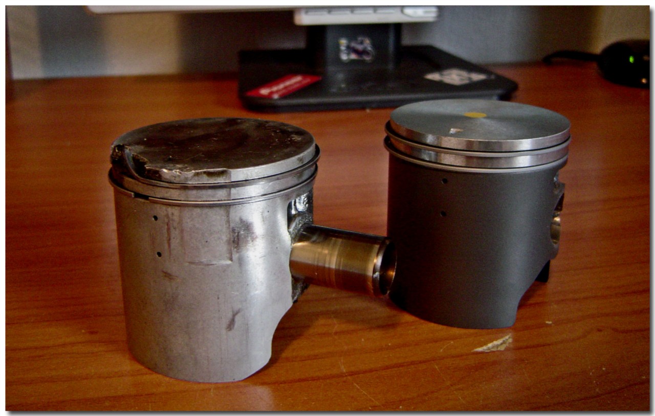Vanha mäntä otti hiukan iskua pakoaukonsäätimestä. Sylinteriin ei tullut kuitenkaan minkäänlaisia jälkiä, välillä voi siis käydä näinkin.