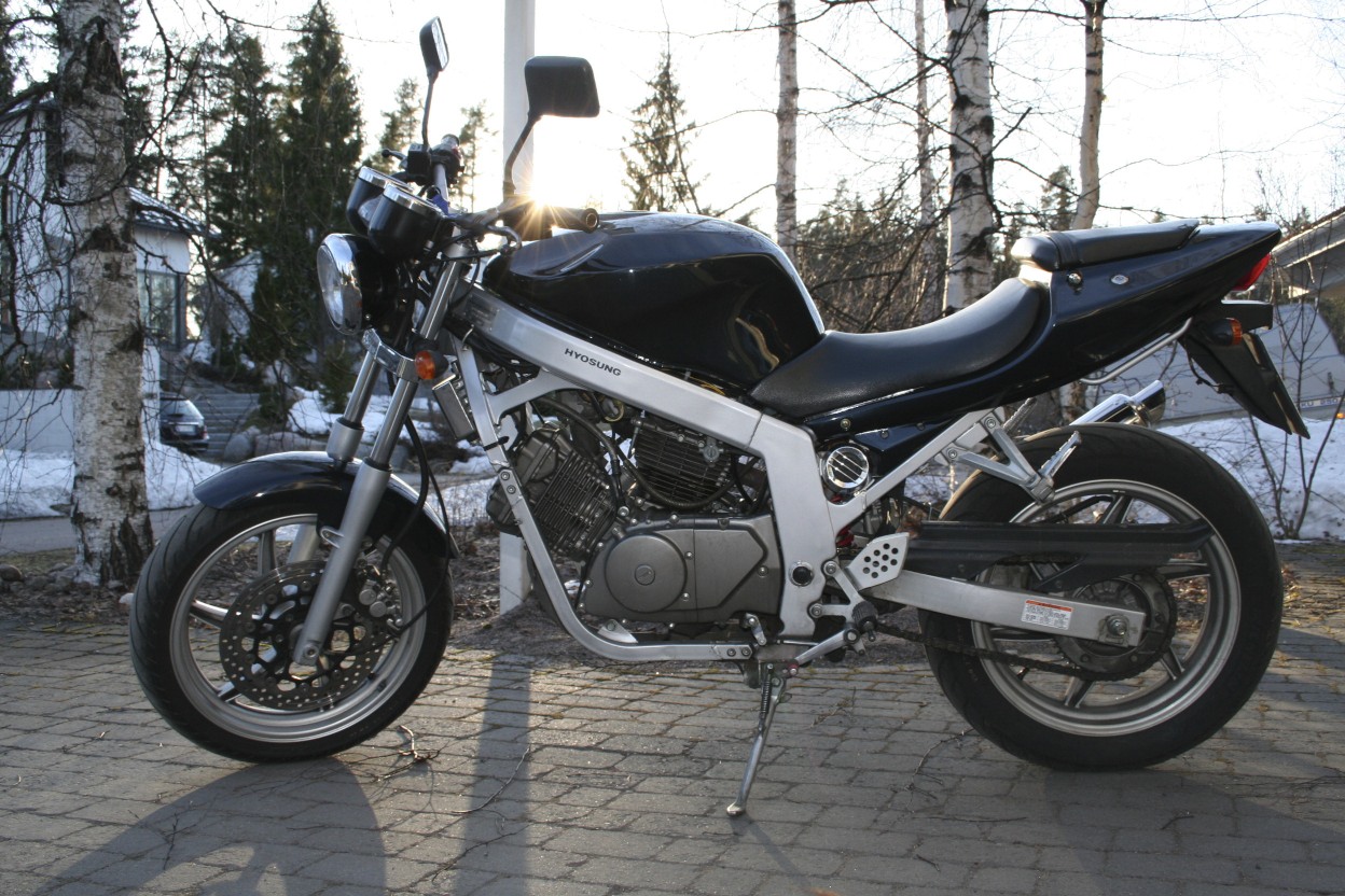 Asiallisen näkönen (musta väri ainoa oikea ;) ). Kai jotain pikku hilpettä ilmestyy? Leveempää tankoo, sirompaa kilpitelinettä, änkkää "mallia suora", mahd. minivilkkuja ja pienempiä peilejä...