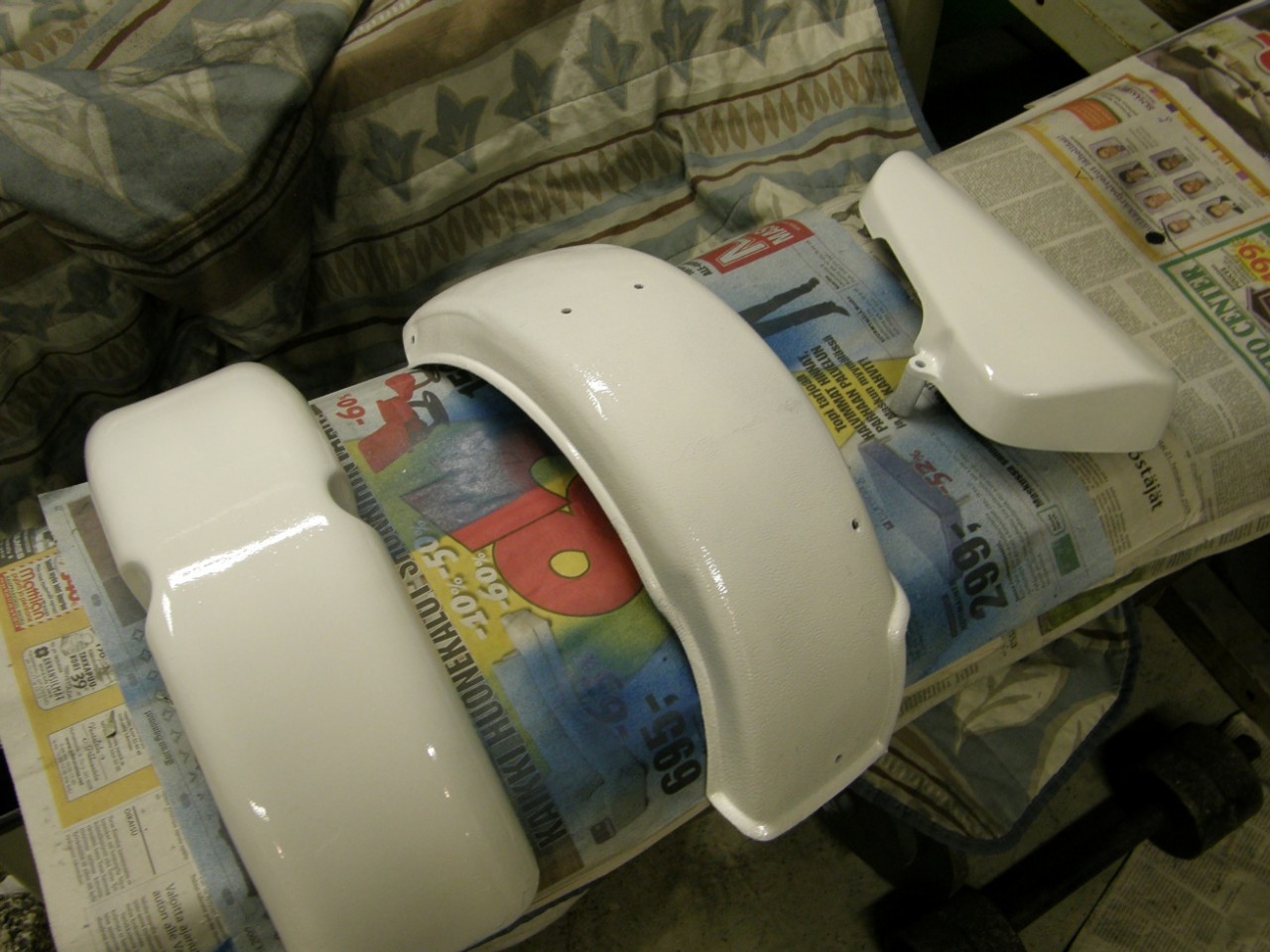 Lokarit maaleissa. Ja ei takalokarissa ei ole niin paha appelsiini kuin kuvassa näkyy vaan lokari on muovinen ja sen pinta on röpöläinen.