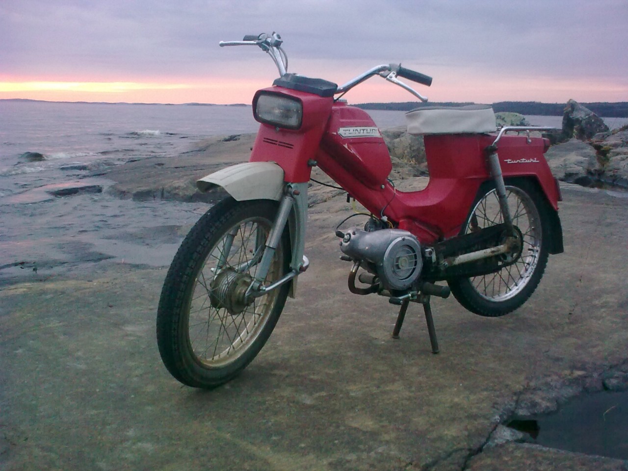 Eka testilenkki tuli heitettyä. Mopohan on kilvissä ja kaikinpuolin laillinen. Tarkoitus oisi vielä tällä viikolla mennä töihin tällä. Matkaa se 20km ;)