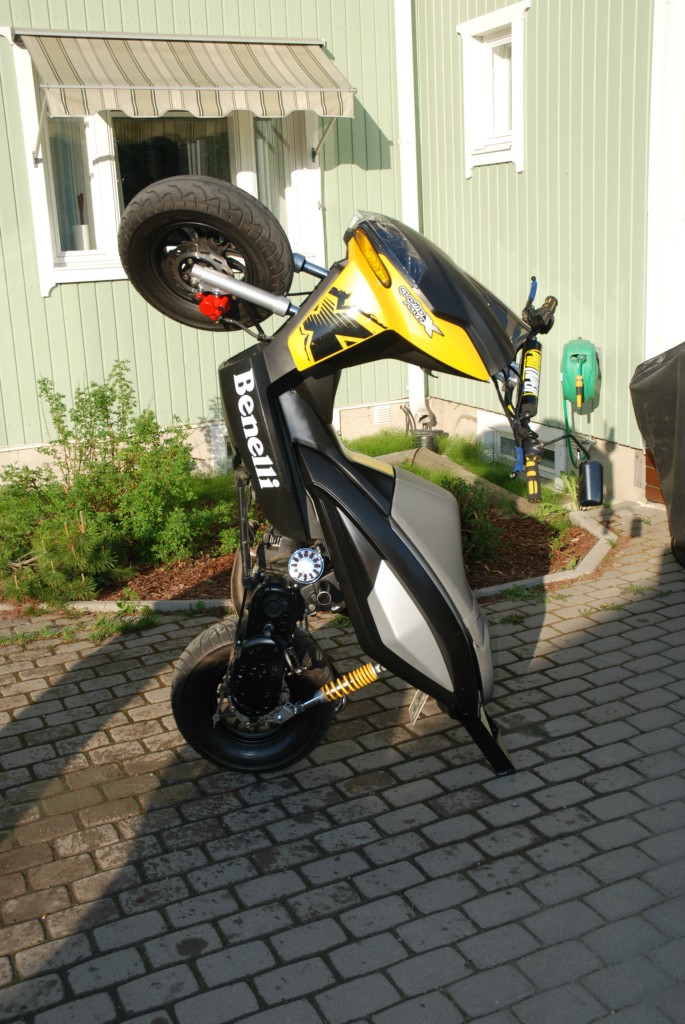 kiitti! ohan siinä polini 70cc, tehari, 19mm kaasari, hebon vari, hebon kytkin, stage6 kampura ja kaikkea muuta mitä on tullu pistettyä :D kyllähän tuolla keula nousee helposti ko oppii, mutta pittää ...