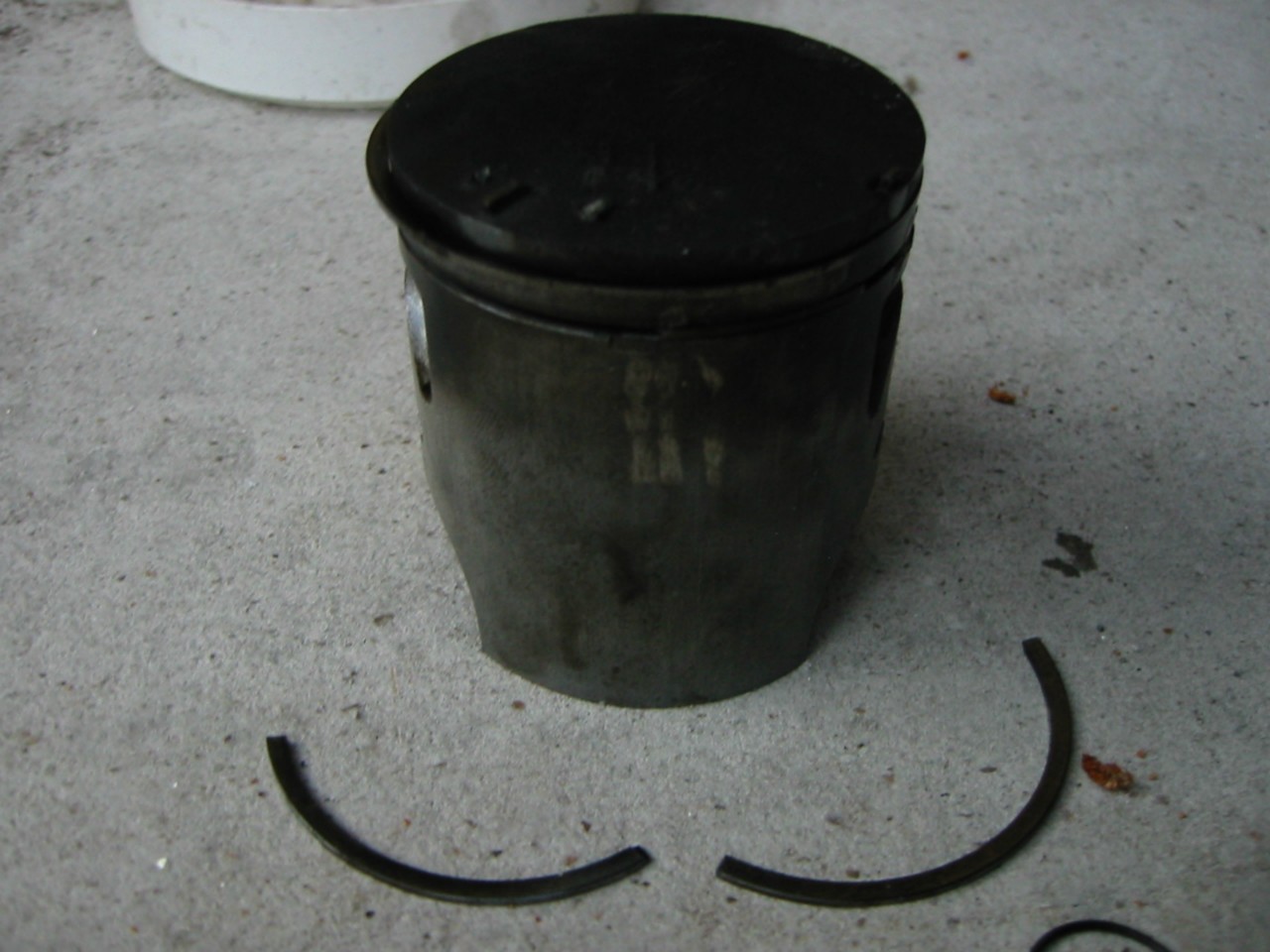 Pyttyyn ei tullut mitään jälkiä (ei johtunut aukkojen reunoista eikä säätimestä), mäntään ja kanteen hakkaumat, petareiden väliin meni myös jotain moskaa.