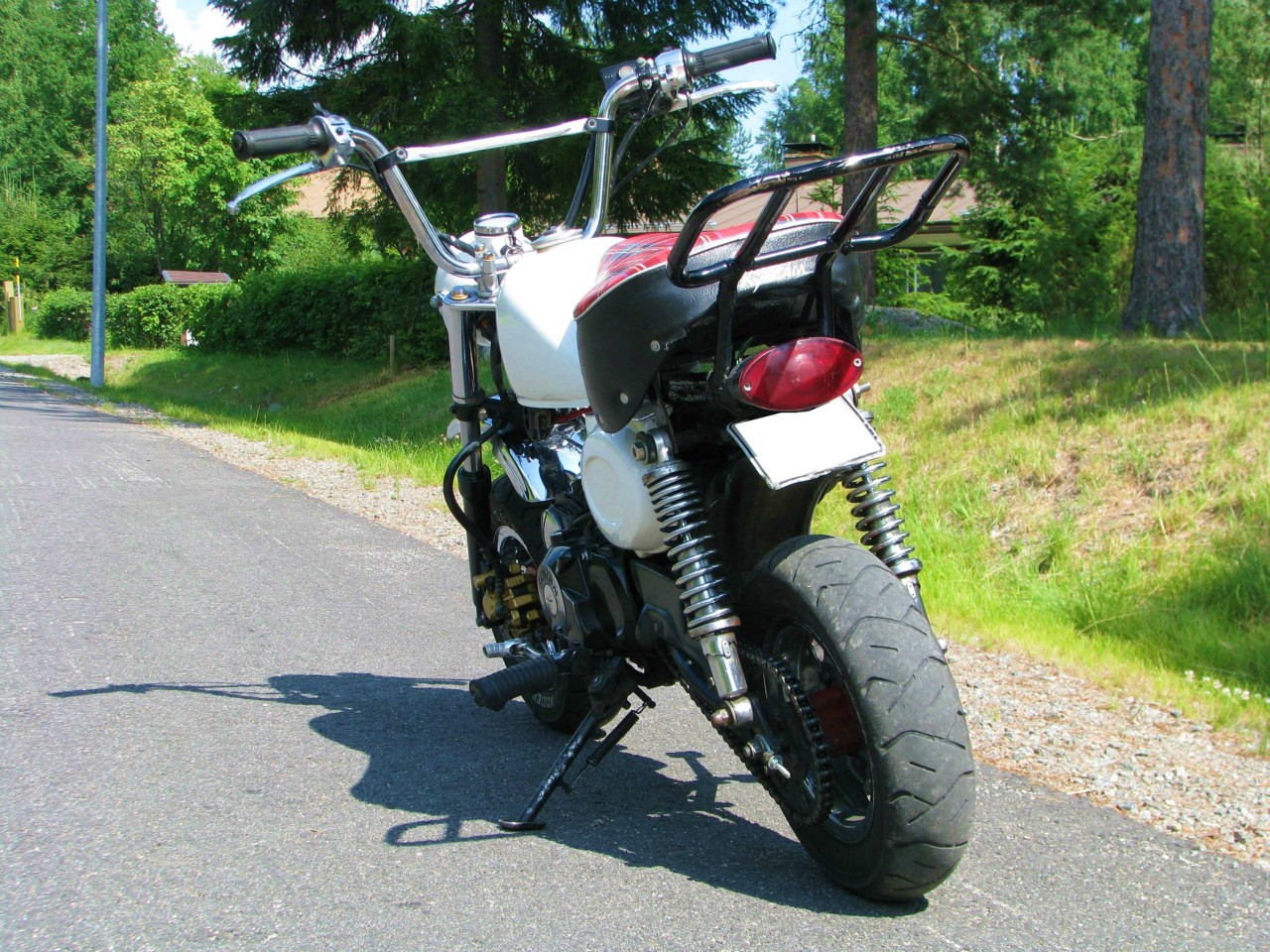 Thänks. Ei siinä paljoa muutoksia loppujen lopuksi ole tehty, tangon vaihto, tarakka, pieniä ulkonäköjuttuja ja sit tietysti maalaukset. Mulle se riittää tollasena, ollu käyttiksenä jo päälle kaks vuo...