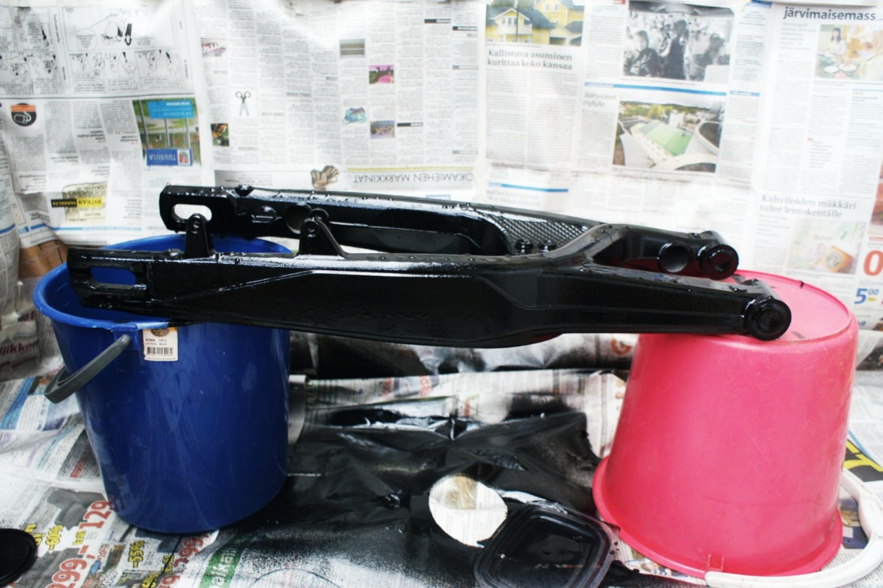 toi oli vasta pohjamaali hioin vielä kerran ja sitten laitoin uuden metallimustan maalipinnan ja siitä tuli sitten todella sileä eikä mitään valumia ;)