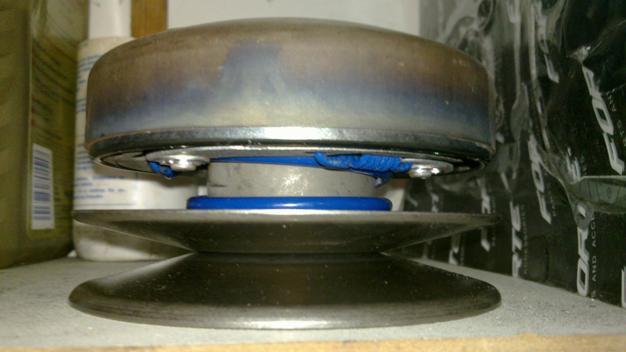 Vp jousen saa helposti painettua takasin kun laittaa koko pakan lattialle ja toisesta laitaa painaa polvella (lankun palaa käytin apuna) ja toista laitaa toisella kädellä. Vapaalla olevalla kädellä saa nopeasti mutterin kiinni. Mutteri kannattaa vielä kiristää ruuvipenkissä.