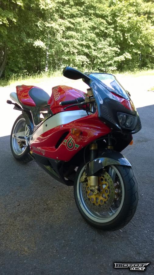 Mallia SB6-R valmistui 600 kappaletta, joista tämä myynnissä oleva on numero 350, ensirekisteröity 27.3.2002 Saksan Kölnissä. Pyörän Suomeen 2009 tuoneen henkilön jälkeen se on ollut yli 7 vuotta myyjän, ajoneuvoharrastajan omistuksessa. Pyörä on varsin moitteettomassa kunnossa: mm. kaasuttimet on puhdistettu ja synkattu viimeksi huhti-toukokuussa 2017, ja moottorin käytös nyt maukasta. SB6-R sai ammattimaisen puunauksen viimeksi 2016, eli kiiltelee kuin uusi - eikös jokaisessa meistä ole sen verran harakan vikaa, että siisti ajopeli saa hymyn huulille?! Omistajalla on muitakin hauskoja ja varsin harvinaisia ajopelejä, eli Bimota on tärvelemätön ja pidetty hienossa alkuperäiskunnossa. Toisin kuin kuvankaunis SB-6 on tämä äkäisempi Ärrä ainakin viimeisen ajoneuvotilaston silmäilyni perusteella ainoa Suomessa.