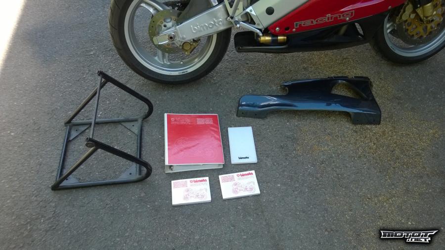 Pyörän mukana tulee alkuperäinen Bimota-huoltopukki, korjausopas, kaksi omistajan käsikirjaa ja Bimota-asiakirjakansio. Lisäksi mukaan tulee oikealle katteen alalaitaan kuuluva pala, koska kiinni olevassa alkuperäisessä on pieni virhe. Tämä noin 6.000km ajettu SB6-R yksilö (ajan sillä sään ja tilanteen salliessa) lie tarjolla olevien parhaimmistoa, ja malli on eräs Bimotan klassisen kauden onnistuneimpia. Pyörä myydään vähäiseksi jääneen ajamisen vuoksi - sitä on kuitenkin pidetty jatkuvalla huoltamisella moitteettomassa ajokunnossa, ja vetreytetty ajoittaisilla ulkoiluttamisilla.