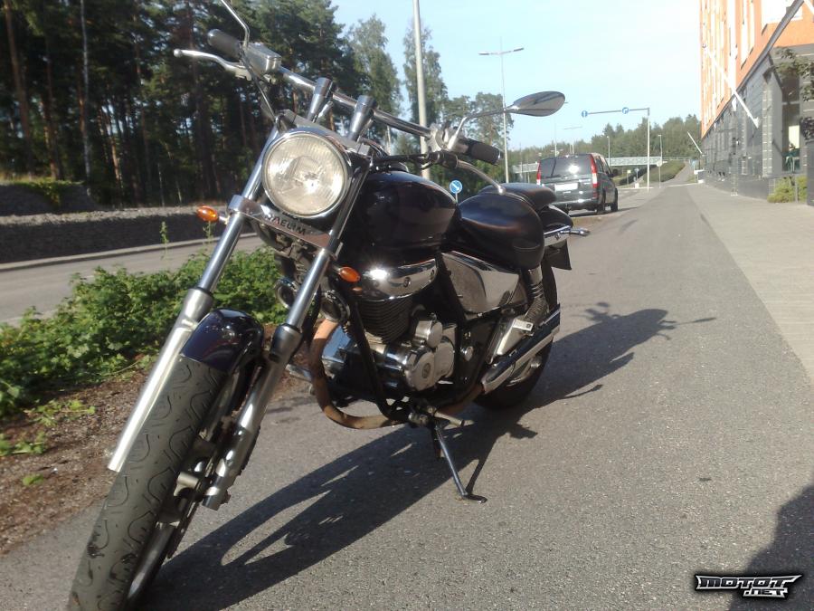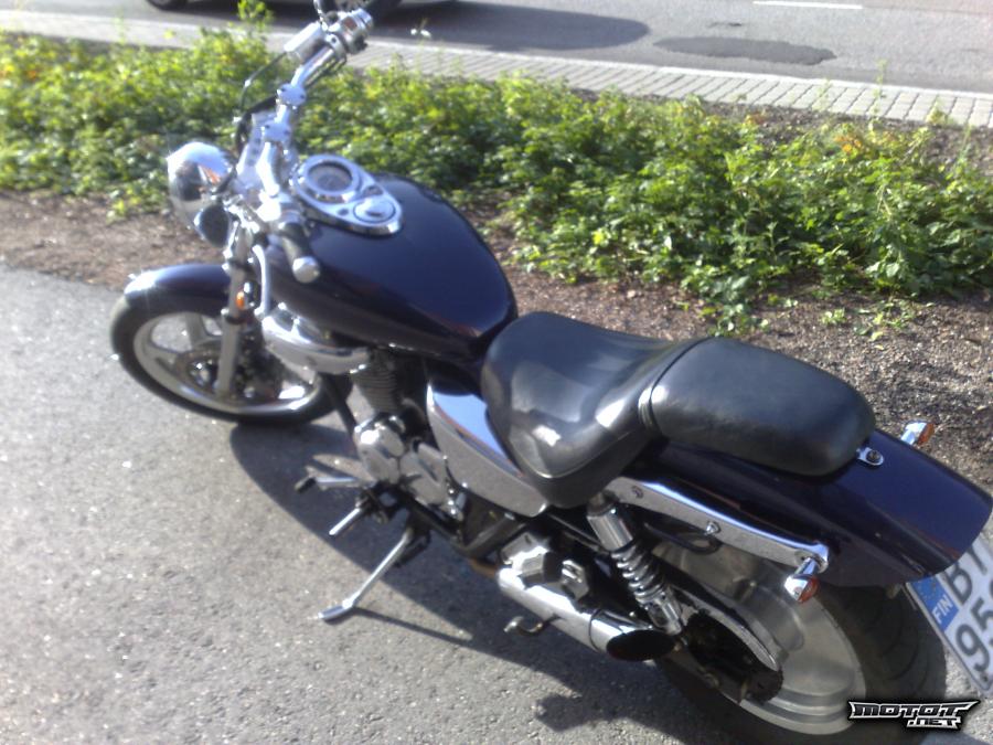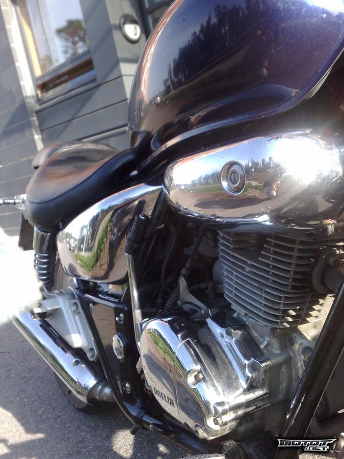 Pyörällä olen huiput ottanu 145 joten se kyllä kulkee, normaalissa ajossa päästään kuitenkin 110 paikkeille ilman sen kummempaa rääkkäämistä. Kuten kuvista näkyy, kromiakin tästä pyörästä löytyy. Vasen takavilkku ei toimi.