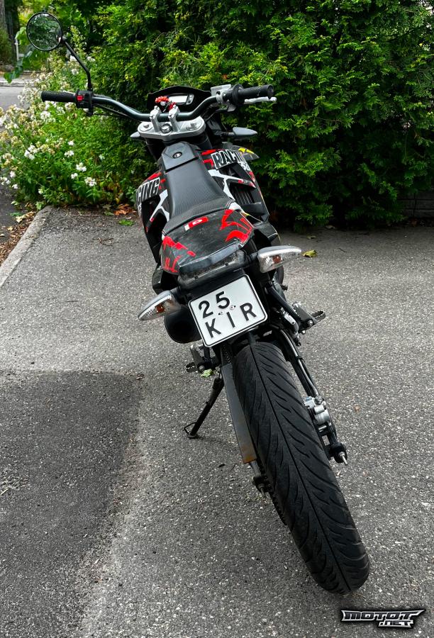 - etulokarissa naarmuja kun mopo lipsahti juniorilla kerran alta hiljaisessa vauhdissa mustalla jäällä, muuten hyvin vähän käytön jälkiä
