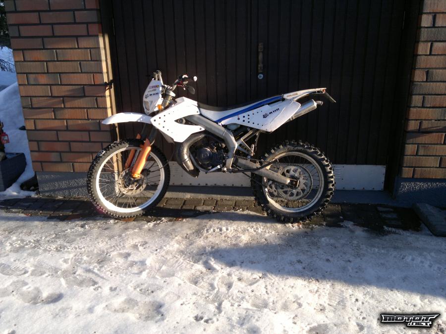 Eli mopo on hyvässä kunnossa lukuunottamatta noita paria miinusta. Tällä hetkellä kiinni kuristamaton vakioputki, mutta laitan kurin putkeen ostajan halutessa. Putki maalattu syksyllä, mutta ottanut jo hieman pintaruostetta. Kuvissa oleva vaimennin ei kuulu kauppaan, kiinni on silloin vakiovaimennin. Pyörään on enduro ja supermoto vanteet, motoissa hyvä etukumi, mutta takakumi aika kulunut. Motoissa myös isompi piparkakkulevy edessä. Enskoissa talven ajettu kendan crossirengas takana ja hyvä nastakumi edessä, mukaan tulee myös eteen crossikumi. Lisähinnasta mukaan saa myös Tecnigas MX teharin(melkeen kuin uusi). Muuten mukaan tulee jotain pikkunippeliä, kuten mustat etukatteet jne.