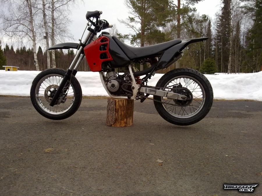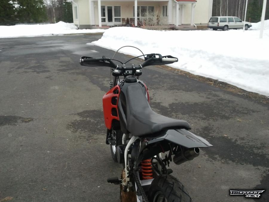 Vastaus: etuvalon toimii spotti joka on loksun alla, takavalokin löytyy nykyää. vilkut voin laittaa ostajan halutessa. ja koneeltaan piristetty ''katumalli'' , ei siis cr, mutta ihan hyvin löytyy potkua. ei vaihtoa kiitos!