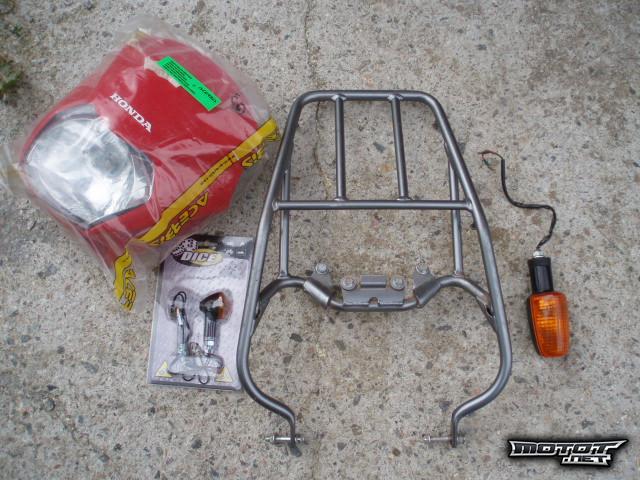 Pyörään on vaihdettu Acerbiksen valomaski, Dicen minivilkut ja ohjaustanko.