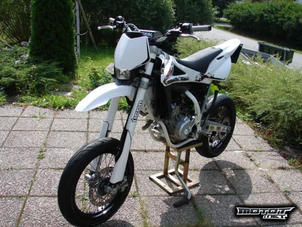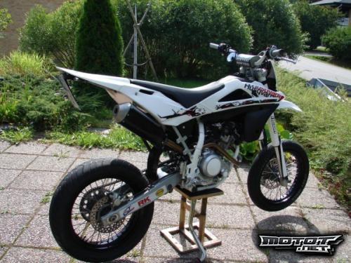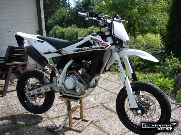 Nyt kaupan siisti ja ikäisekseen vähän ajettu hermus husse. Mauno Hermunen Special malli jossa esim parempi keula alumiinen tankin korkki ja tarrasarja näitä valmistettu 131 kpl joista 84 nelitahteja joista tämä on viimeinen siitä koru todisteena. Hussen ostin keväällä jolloin tuolla oli ajettu 3500km ja nytten mittarissa on noin 7000km kilometrejä ei juurikaan enään kerry . Pyörää muutettu omaan silmään paremmaksi kuten kuvista huomaa.