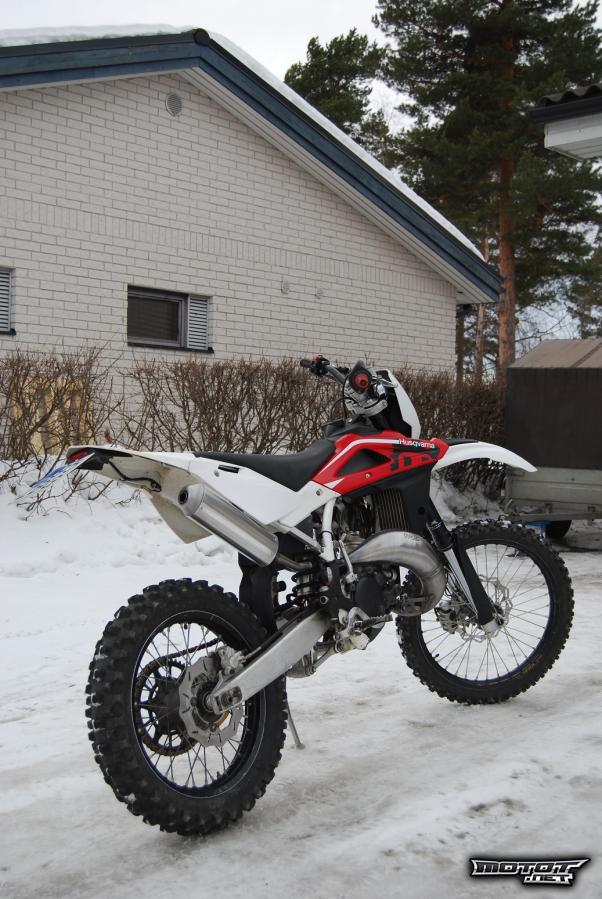 Kuvasta poiketen pyörässä kiinni Husqvarnan oma kisaputki.