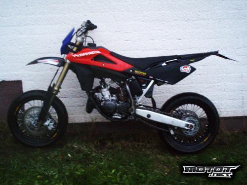kyseessä siis wr malli mitä ei pidä sekoittaa wre:hen. Mittari lukema on hieman epätarkka sillä n. 1-2h sitten mittari otettiin pois käytöstä sillä oli hajonnut. Vaikka talvi tuleekin ei pyörää tarvitse laittaa tallin sillä mukana tulee hussen vakio enskat piikkirenkailla. Kesällä asfaltilla voi nauttia excelin supermotoista. Enskoissa on kiinni husqvarnan omat vakio jarrulevyt ja 42 piikkinen takaratas. Smotoissa taas on isot jarrulevyt; edessä 300mm ja takana 260mm. Taakse on vaihdettu bridgestonen 160 levee rengas jolla ajettu vain n 10h. eli kestää vielä pitkään. Pyörään on vasta tehty KAIKKI säkhöt uusiksi joten niiihin voi luottaa. syksyn pimeän aikaan laitettu vakiomaski kiinni, normaalisti numerokilpi jolla saa paljon hienomman näköiseksi pyörän