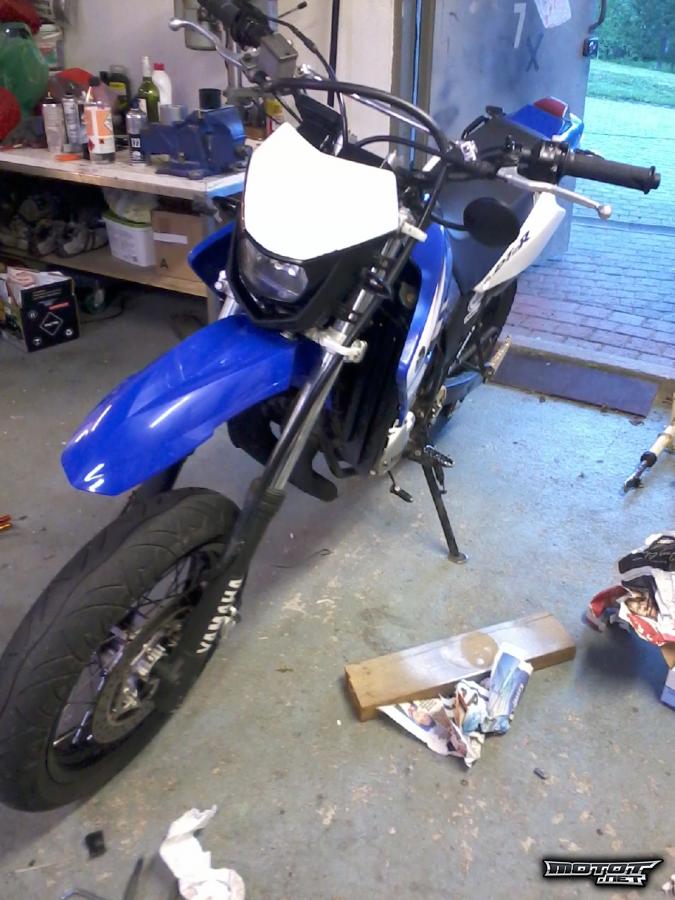 Excelin smoto vanteet, aivan uusi maski ja sininen supermoto etulokari, minivilkut.