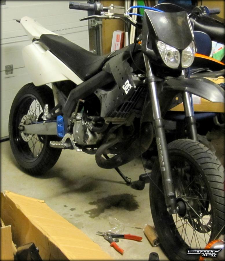 23.11: Mittaristo irrotettu piuhoja katkomatta, husqvarnan näyttävä numerokilpi vaihdettu eteen. Myöskin ostettu muuta uutta palikkaa kuten pikakaasukahva ja kaasuvaijeri.. Nyt toimii hyvin.